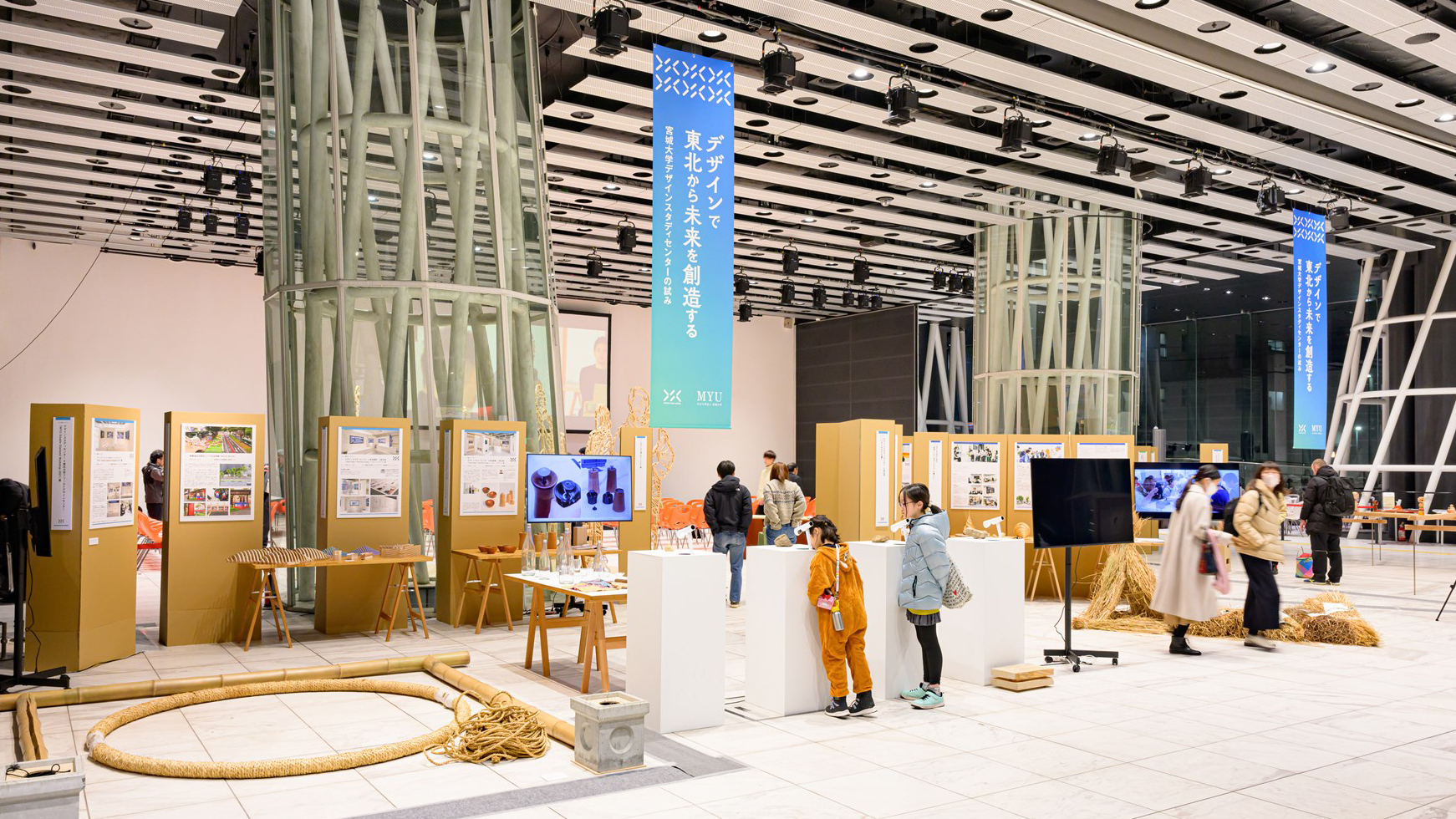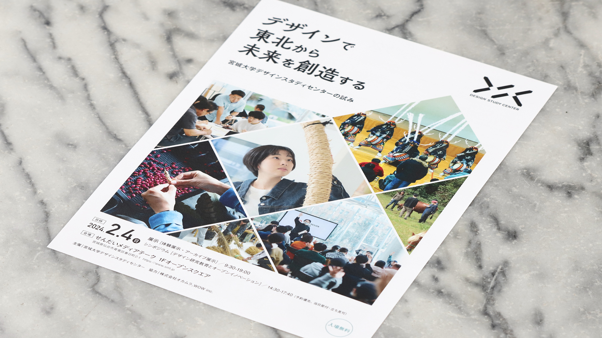 展示・シンポジウム「デザインで東北から未来を創造する」。2024年2月「デザイン」をキーワードとした体験展示・アーカイブ展示とシンポジウムを開催、展示では,宮城大学デザインスタディセンターが発足から3年間に行ってきた「デザイン」をキーワードに,未来を創造するための様々な活動を紹介。シンポジウムでは,様々なアプローチでイノベーションを展開している企業や組織をゲストに迎え,デザインの研究教育と社会での活用方法について考えました。
